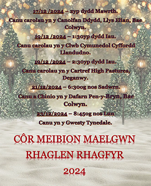 19/12 /2024 – 2:30yp dydd Iau, Canu carolau yn y Cartref High Pastures, Deganwy.